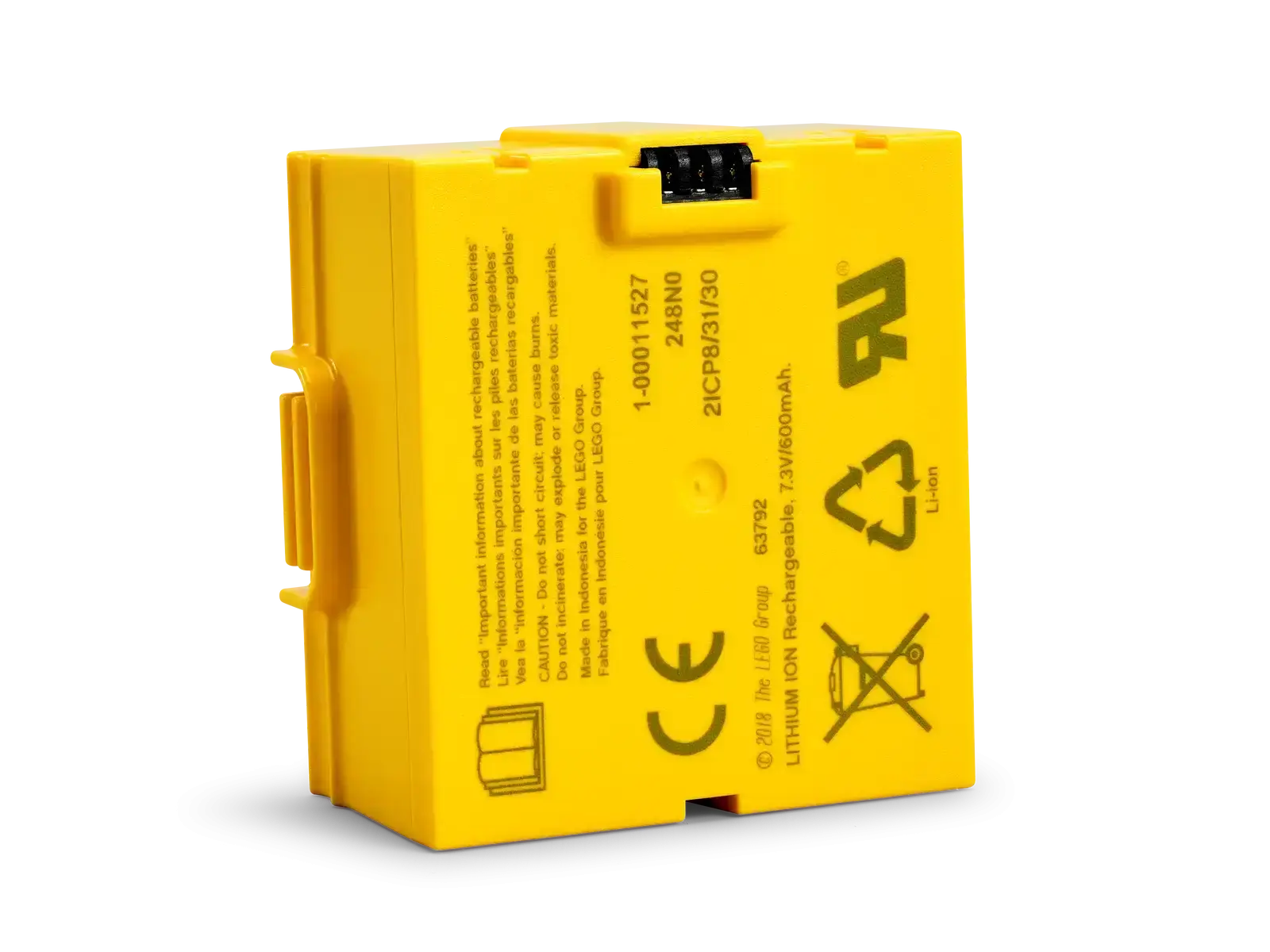The LEGO Technic Small Hub Battery is a rechargeable lithium-ion battery for use with the Technic Small Hub. This 600 mAh battery can be charged while fitted to the hub using a micro USB cable and can also be removed quickly and conveniently without the need for tools. This battery is included with the LEGO Technic Small Hub and LEGO Education SPIKE™ Essential Set (45345).