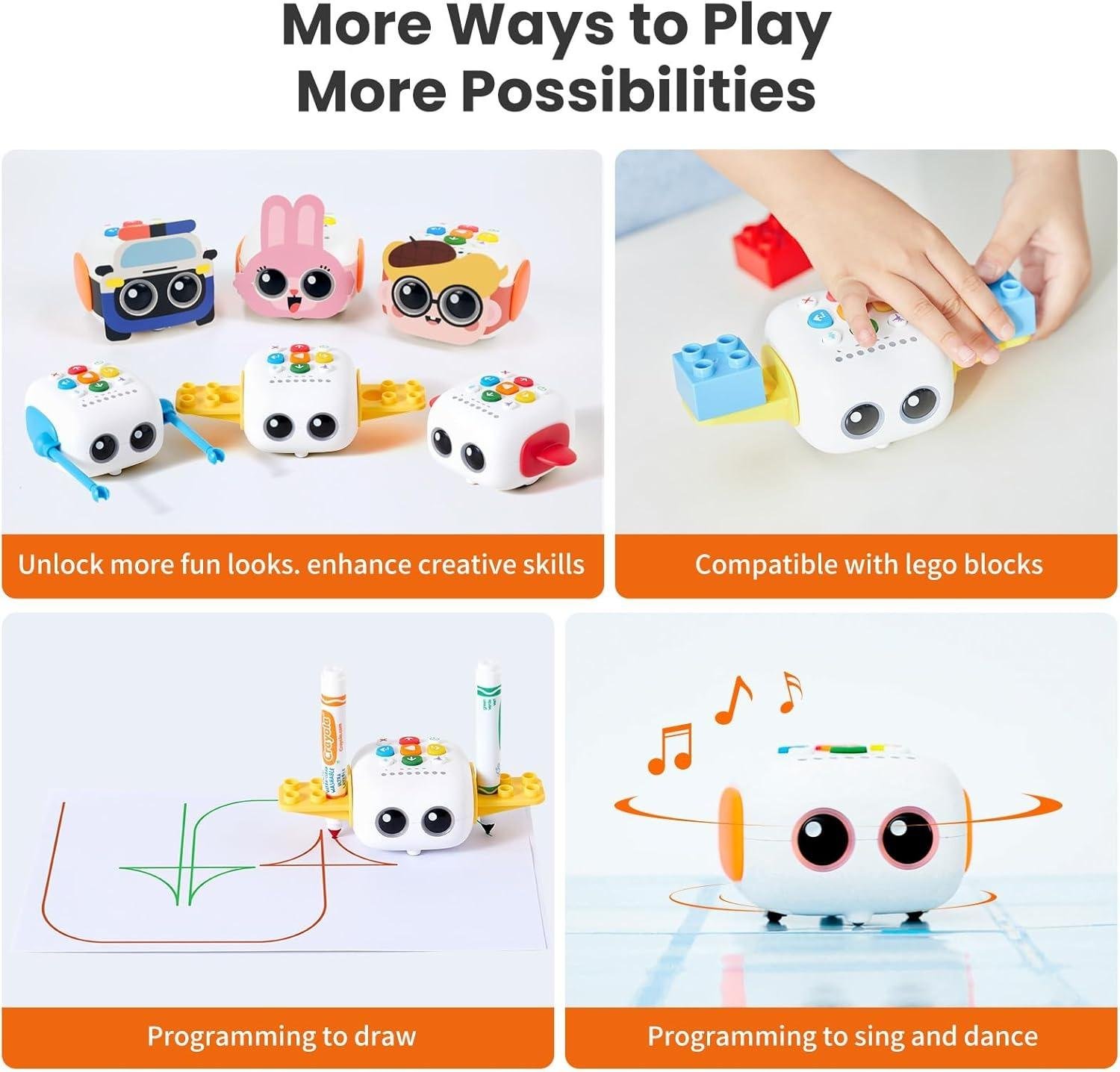 The robot is also compatible with LEGO® blocks, allowing children to build, customize, and expand their creations.
